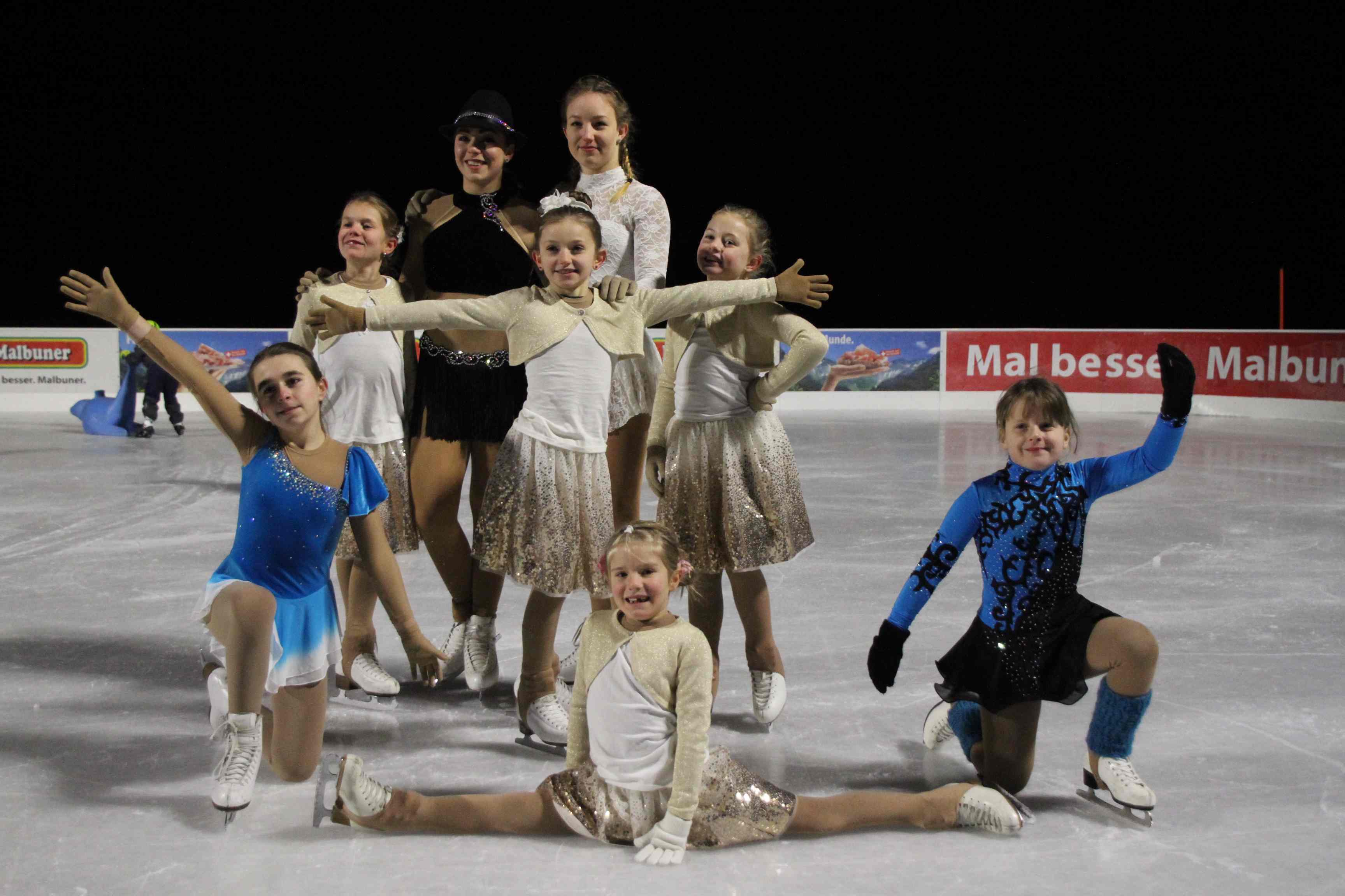 Acht Eisprinzessinnen zeigen ein tolles Silvester-Schaulaufen in Malbun 31.12.2016